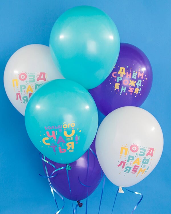 Шары с шелкографической многоцветной печатью и оригинальными дизайнами станут идеальным украшением праздничного торжества и поднимут настроение в любое время года.